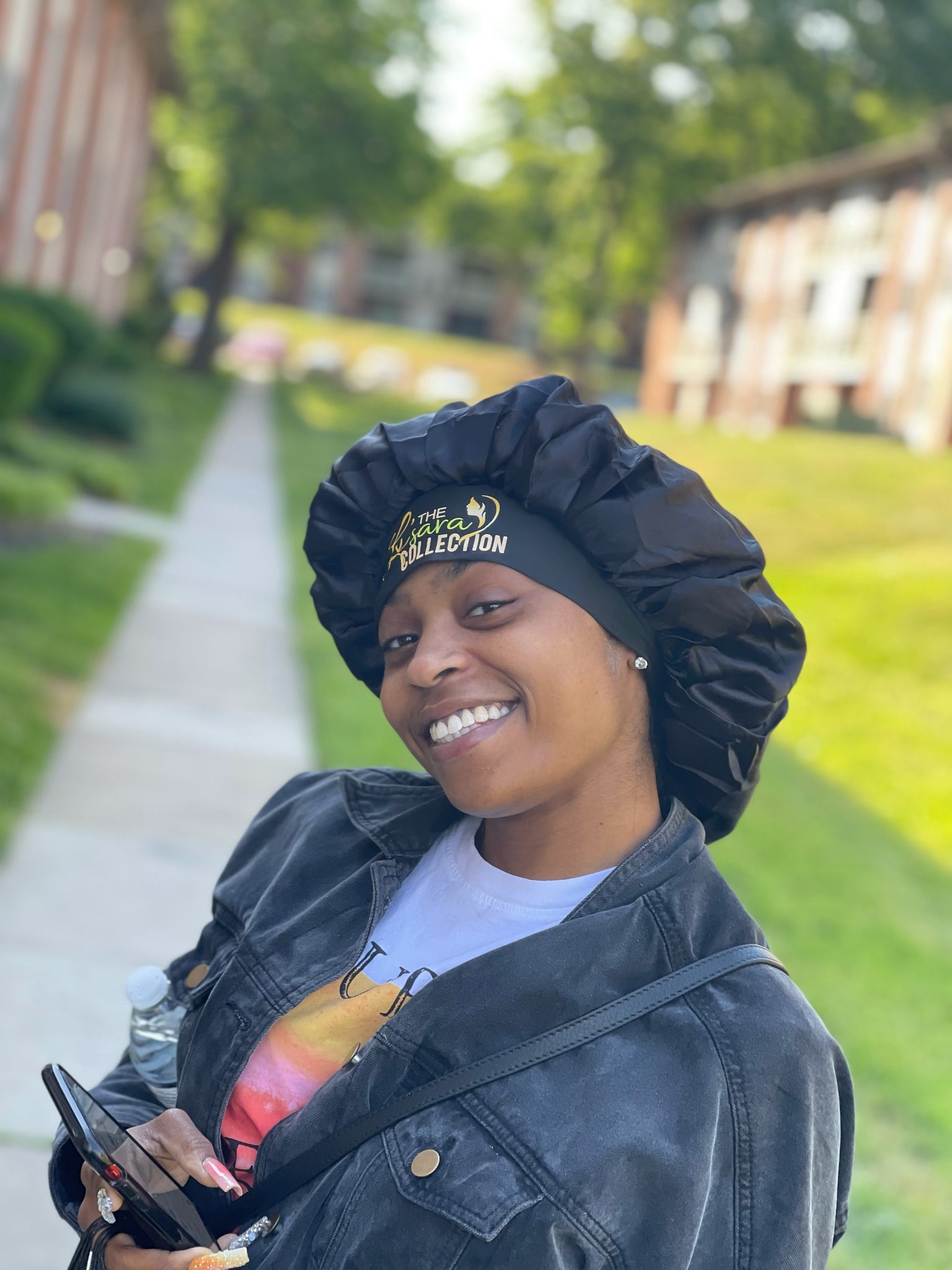 This bonnet acts as both a scarf and a bonnet that allows you to lay down your edges while simultaneously protecting your hair or bundles! This is great for weave, braids or natural hair!